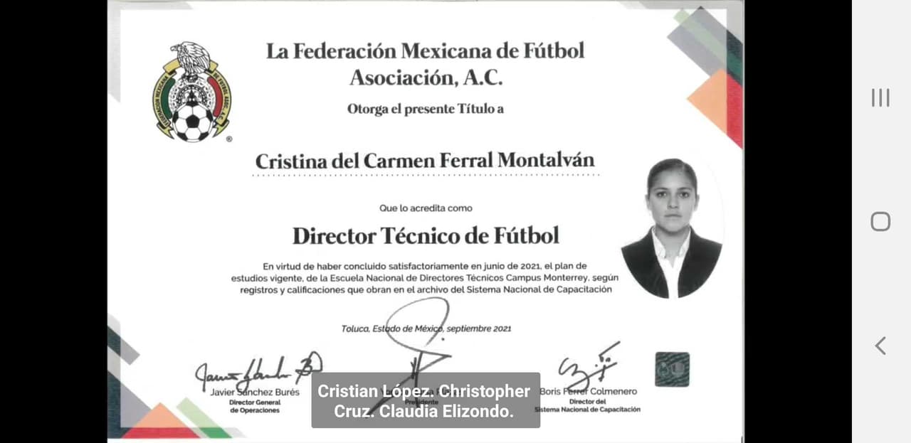 Cristina Ferral, jugadora de Tigres Femenil, consiguió este fin de semana su título de director técnico por parte de la Federación Mexicana de Futbol tras concluir en junio pasado sus estudios en la Escuela Nacional de Directores Técnicos Campus Pachuca.