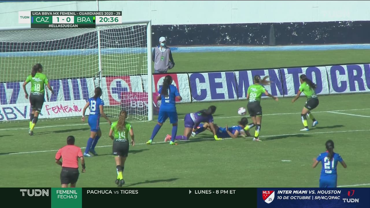 Durante el resto de la primera mitad, Bravas fue poco a poco acercándose al arco de Verónica Jiménez, fue volviéndose peligroso pero no lograron capitalizar sus llegadas.