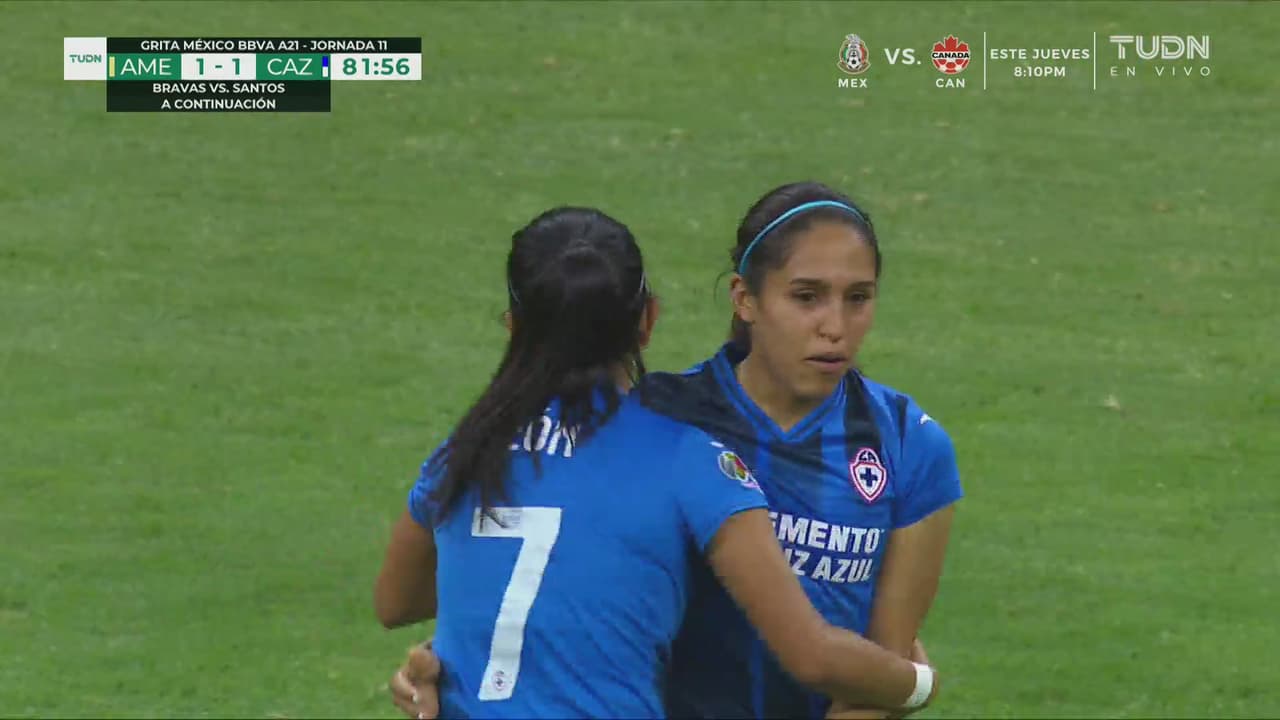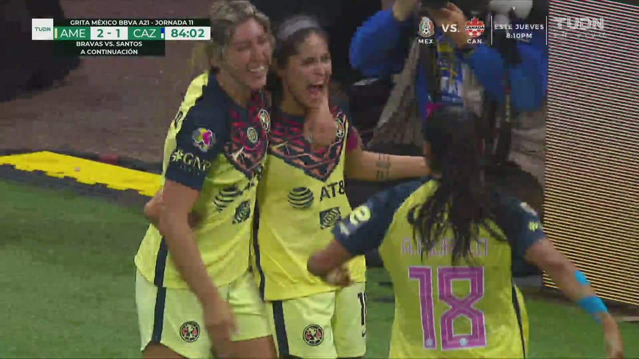 La goleadora llegó a ocho anotaciones en su carrera frente a la Máquina. Asimismo, la delantera del conjunto de Coapa lleva siete anotaciones en total y es la máxima goleadora de las Águilas en el Apertura 2021.