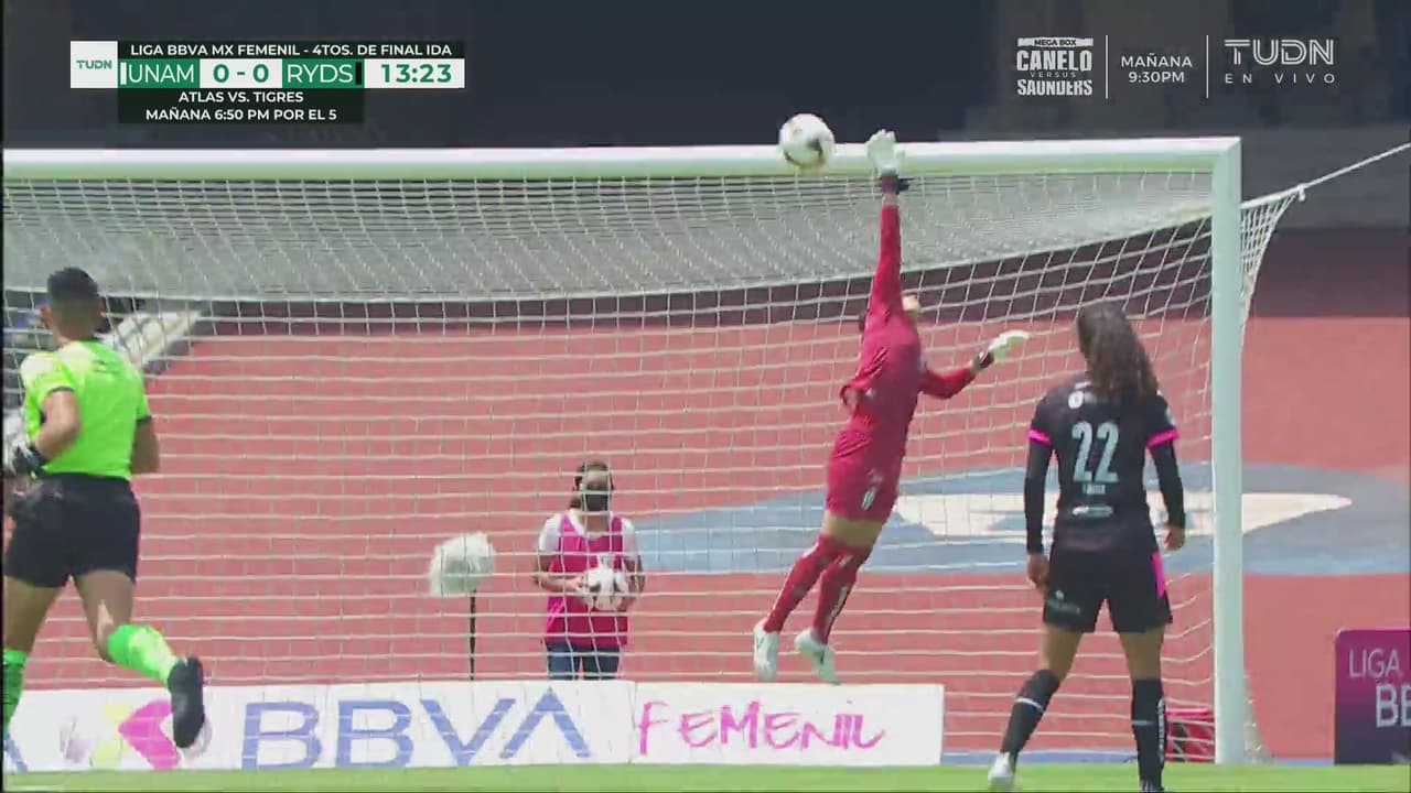 Previo a la primera anotación del partido, las universitarias estuvieron cerca de romper el cero con un tiro de larga distancia que pasó desviado.