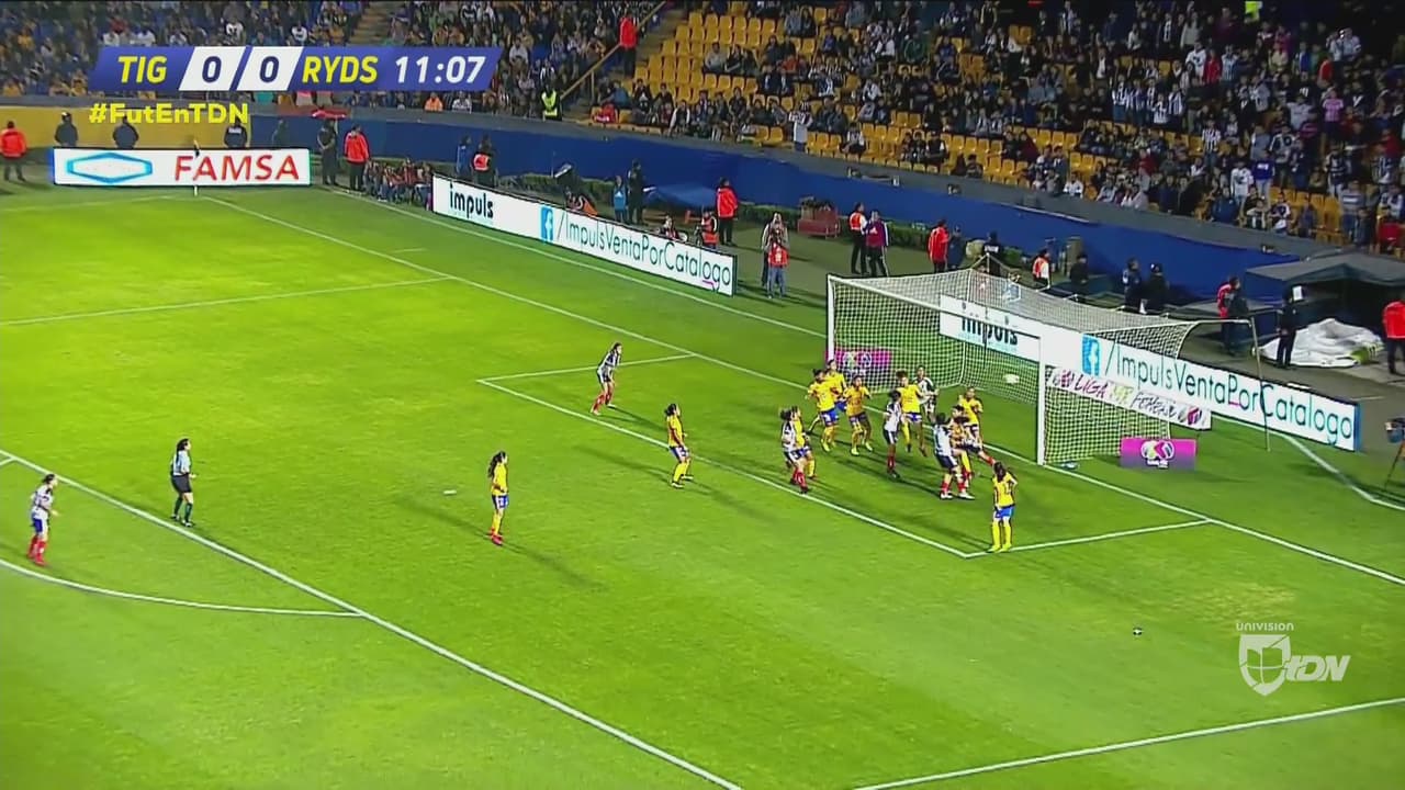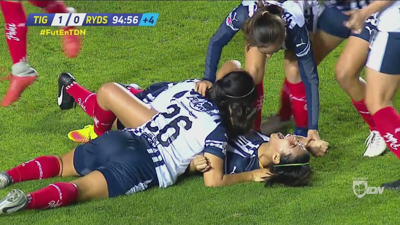 Las felinas tomaron la ventaja en el minuto 23 con gol de Katty Martínez, pero las Rayadas igualaron con anotación de Maria Cadena.