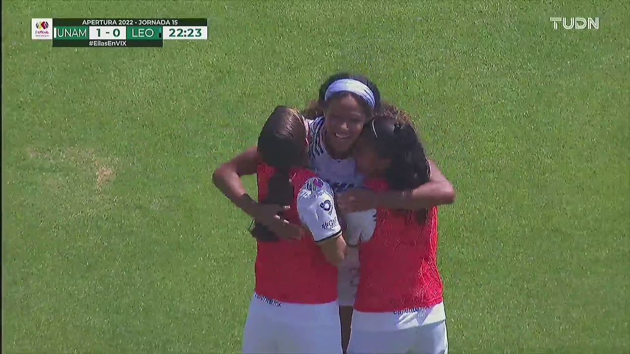 Pumas inauguró la pizarra 1-0 sobre León gracias a que Aerial aprovechó una gran asistencia de Paola Chavero y así anotar su primer gol de la temporada con las auriazules.