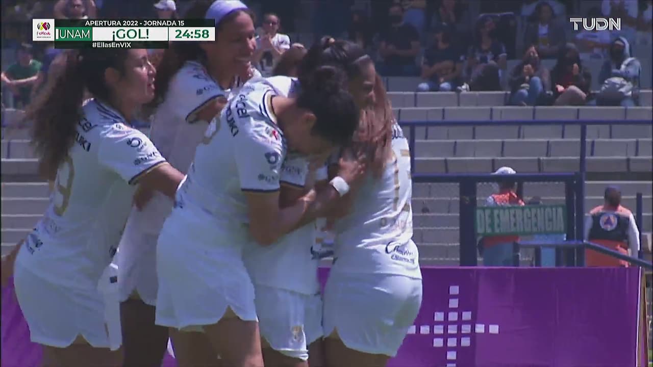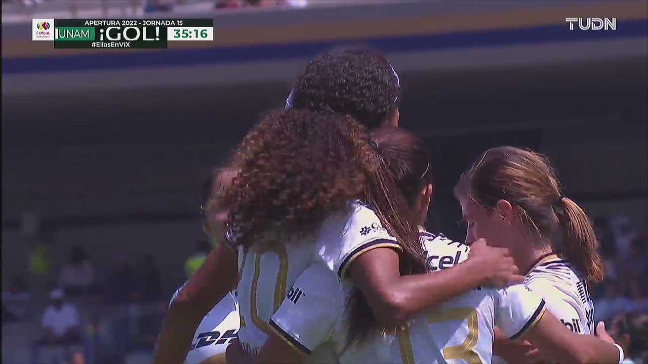 Las universitarias no se cansaban de anotar y fue Gabriela Juárez quien hizo estallar Ciudad Universitaria al 35' para el tercer gol de la tarde.