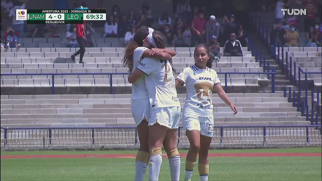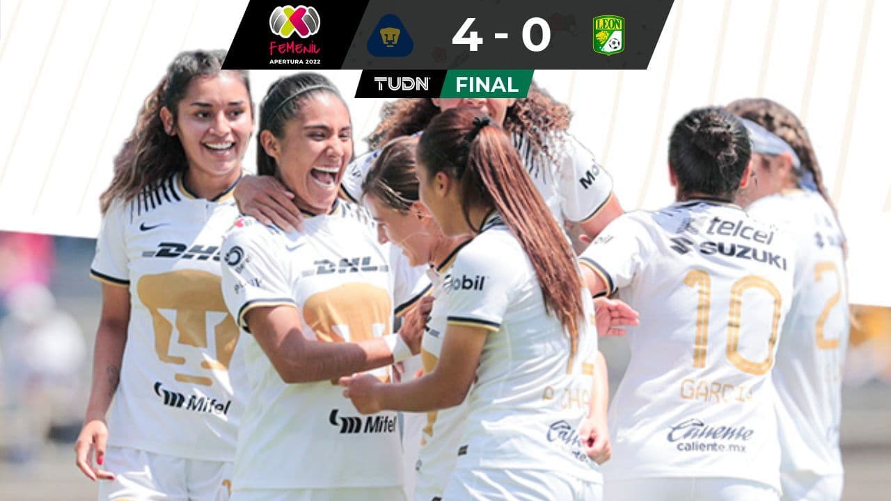 Pumas Femenil goleó 4-0 al León en la Jornada 15 de la Liga MX Femenil disputada en el Estadio Olímpico Universitario y mantiene la esperanza de la Liguilla