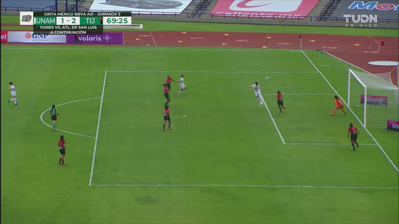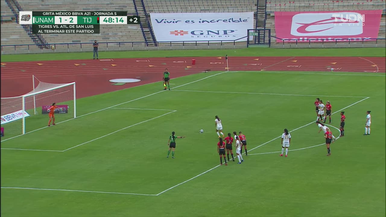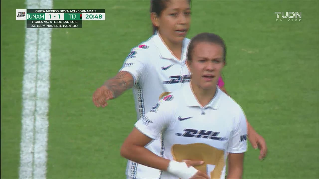 Pumas intentó rescatar el encuentro, pero lograron empatar el marcador hasta el minuto 20 cuando con un potente disparo Laura Herrera que le impidió a la arquera Itzel González de Tijuana detener el disparo.