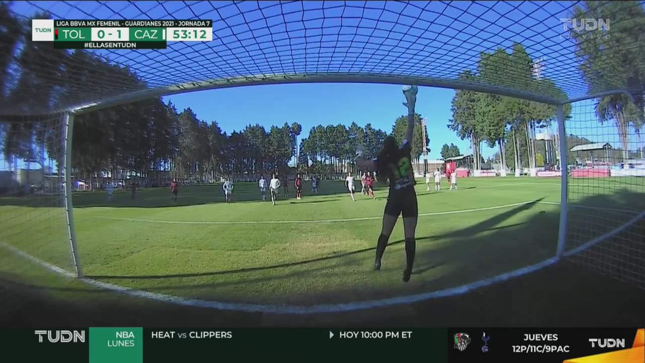 La defensora de Toluca mando un cañonazo espectacular y se salva Karla Morales al minuto 52.