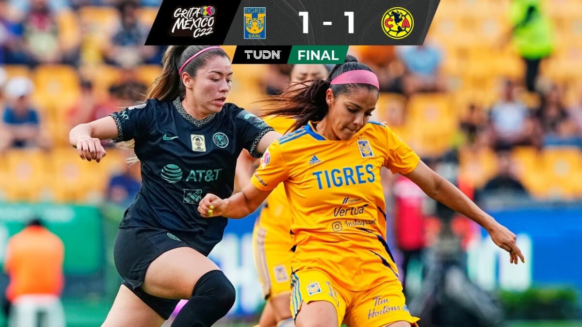 En un partidazo entre dos serios contenientes al título de la Liga MX Femenil, Tigres y Améica empataron en la cancha del Estadio Universitario y se preparan para la liguila, donde las capitalinas enfrentarán a Pachuca y las universitarias a Atlas.