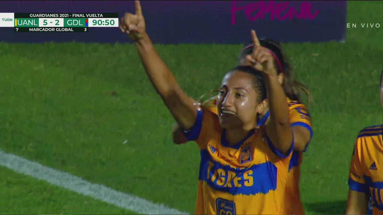 Pero la fiesta no terminó ahí pues en los minutos finales las felinas confirmaron que el campeonato era suyo ya que al 89 Blanca Solís hizo el cuarto de cabeza y al 90 nuevamente apareció mayor para marcar el quinto y definitivo, no obstante, Chivas todavía hizo un gol más en tiempo de reposición.
