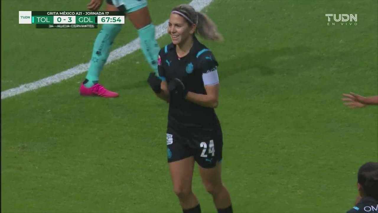 Incluso, pudieron ser más goles por parte de Chivas Femenil, pues al 45’, Cervantes pudo marcar también tras un error de las escarlatas, pero que la portera Wendy Toledo le quitó el grito de gol.
