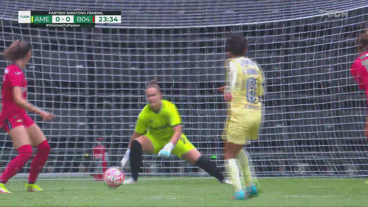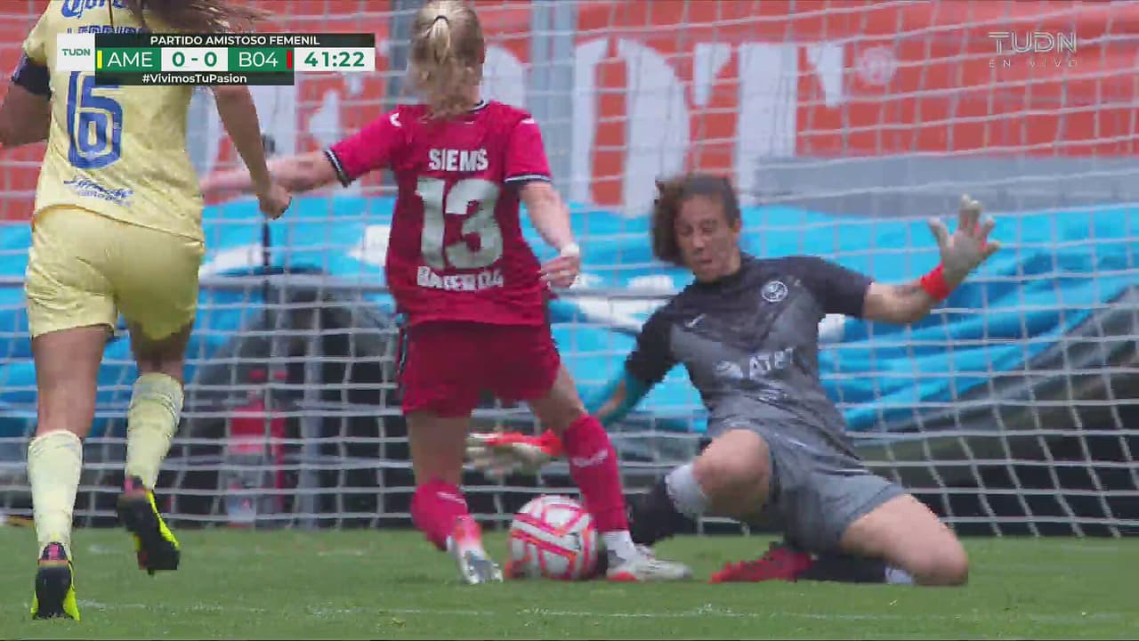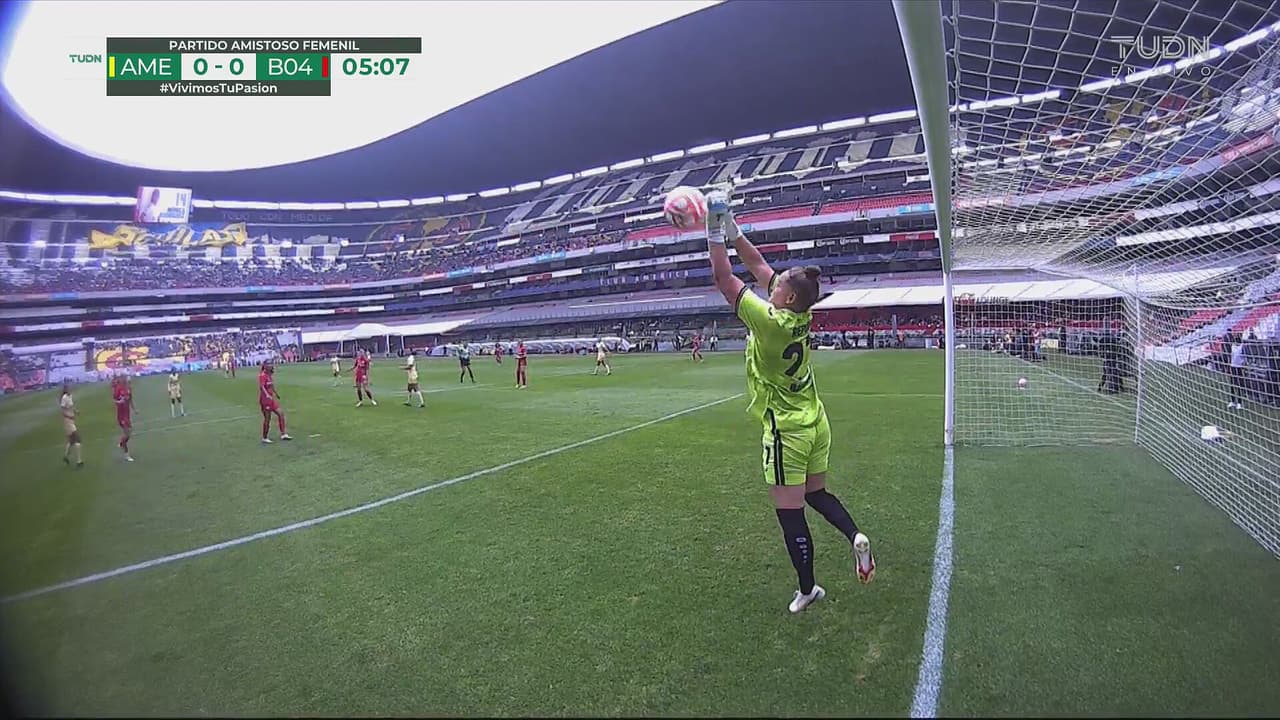 El primer aviso llegó por parte de Eva González del América Femenil en los primeros minutos del encuentro, pero fue atajado por la portera del Bayer, Friederike Repohl.