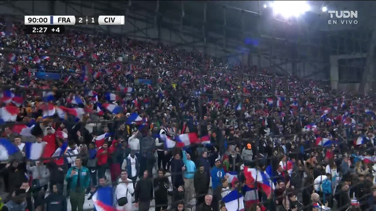 ¡Gol! Francia 2| Costa de Marfil 1. Aurélien Tchouaméni (Francia) disparo de cabeza desde el centro del área por el lado derecho de la portería. Asistencia de Mattéo Guendouzi con un centro al área tras un saque de esquina.