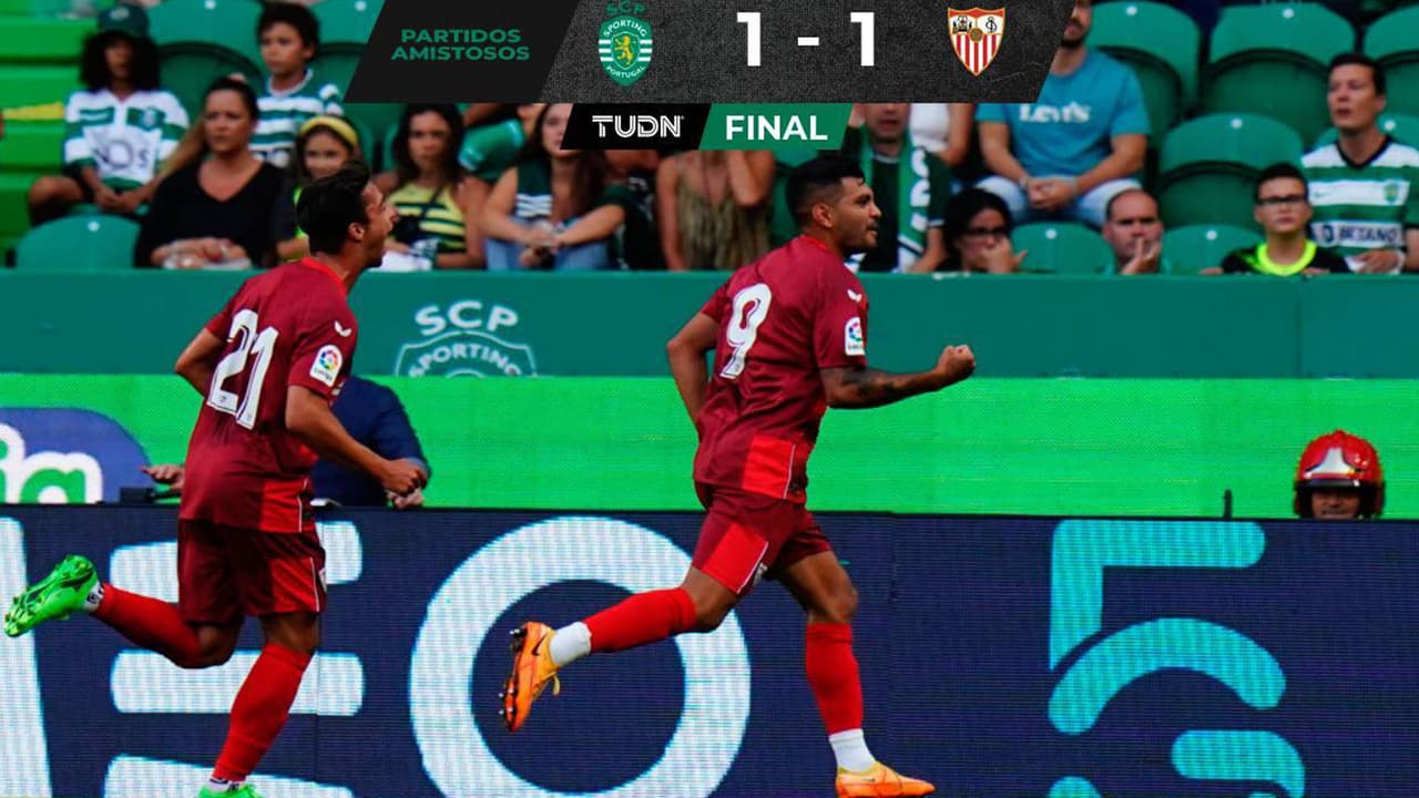 Jesús ‘Tecatito’ Corona marcó el único gol de Sevilla en el empate 1-1 ante el Sporting de Lisboa y luego en los penalits se llevó la X edición del trofeo Cinco Violines que organiza anualmente el club luso en el Estadio José Alvalade de Portugal.
