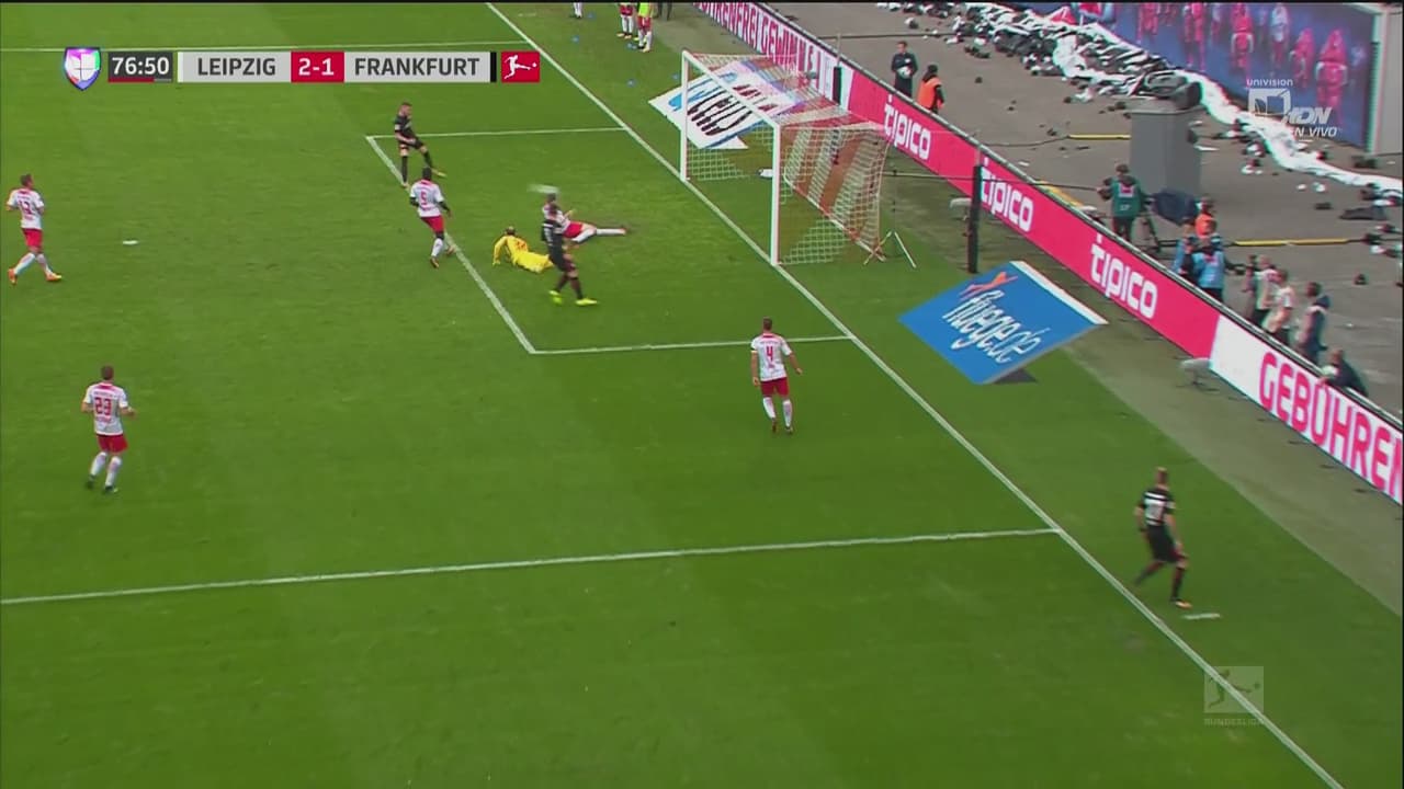 En una gran jugada colectiva el Eintracht acortó la diferencia en el marcador ante el Leipzing con una combinación entreWolf y Rebic.