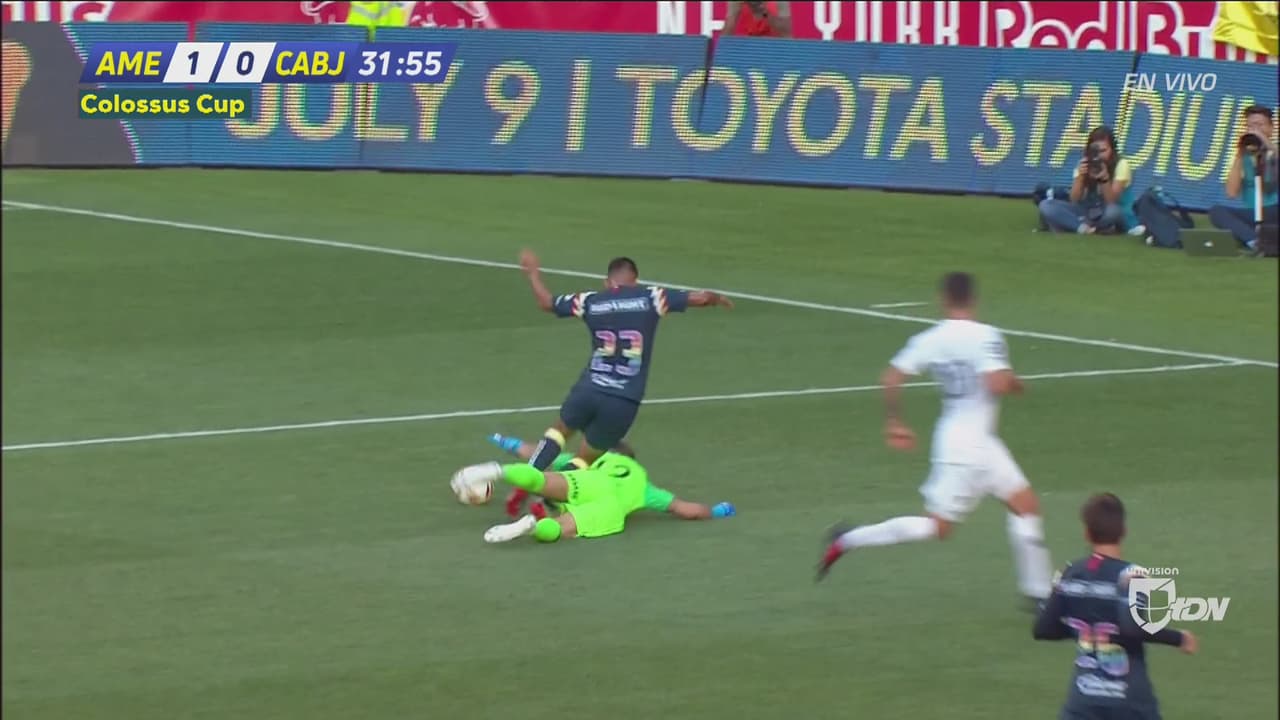 El volante mexicano robó la pelota en tres cuartos de cancha y se coló al área grande quitándose al portero Díaz que pareció cometerle falta, aunque no se señaló.