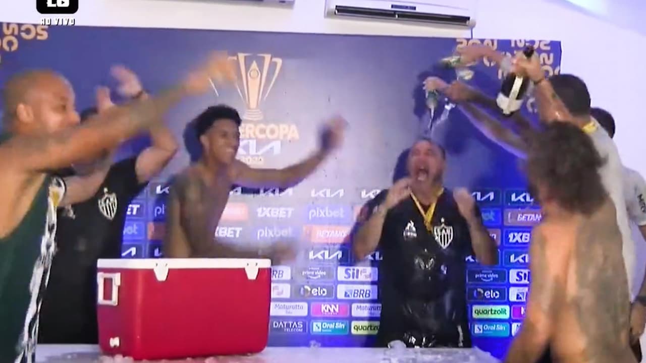 Tras el partido, Mohamed fue a la conferencia de prensa, pero sus futbolistas irrumpieron sin previo aviso, levantaron al argentino para bañarlo con champaña y agua, mientras brincaban y gritaban “campeones” en la sala.