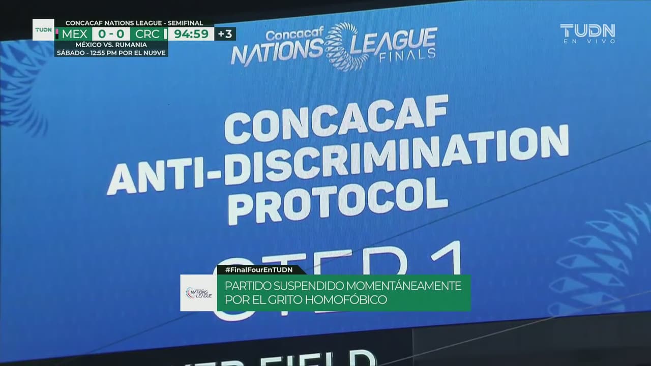 En los últimos minutos del juego de la semifinal se escuchó el grito homofóbico y el protocolo detuvo el encuentro por algunos minutos hasta que el público se calmó gracias a un mensaje de la Concacaf que se transmitió en las pantallas con Memo Ochoa a la cabeza.