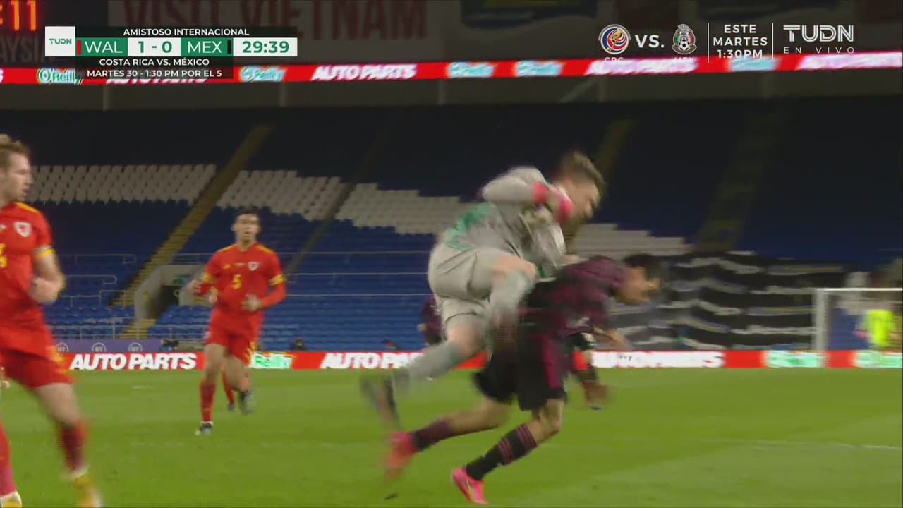 Una de las pocas intervenciones de la selección mexicana que pudo generar en ofensiva, llegó con Orbelín Pineda, quien tuvo franco el remate y el arquero galés impuso su figura heroica.