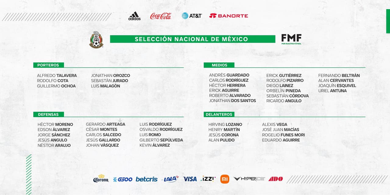 La lista se redujo a 45 convocados e incluye a los refuerzos para Tokyo 2020, Guillermo Ochoa, Henry Martin y Luis Romo, mientras que Javier 'Chicharito' Hernández no figura en la lista.