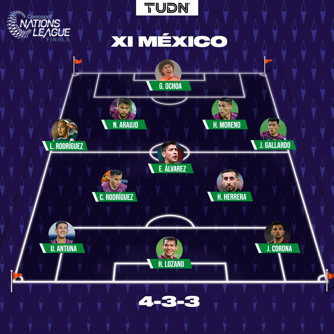 El Tri saldrá con Guillermo Ochoa, Néstor Arraujo, Héctor Moreno, Luis Rodríguez, Jesús Gallardo, Edson Álvarez, Héctor Herrera, Carlos Rodríguez, Uriel Antuna, Jesús Manuel Corona, Hirving Lozano.