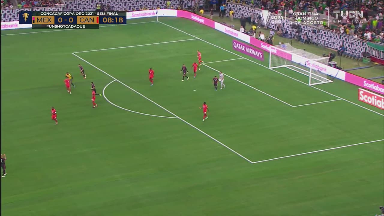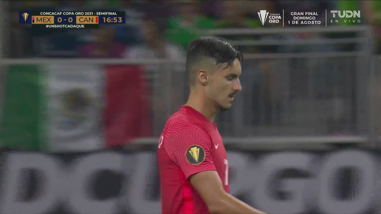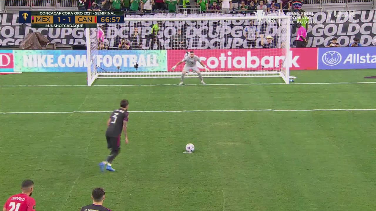 Orbelín Pineda cobra el penalti con autoridad engañando al portero y cobrando sin mucha potencia a un costado dejando sin oportunidad al portero canadiense para marcar el 1-0 para el Tri.