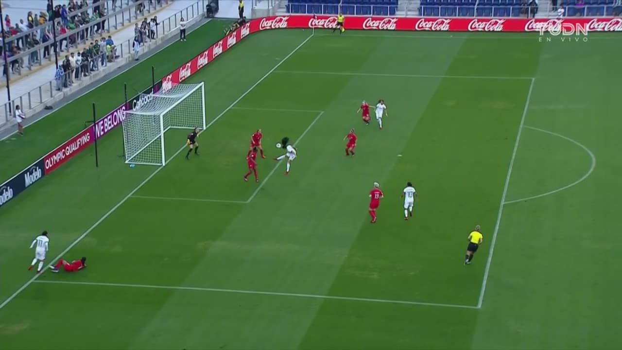 Al 18’, Lizbeth Ovalle hizo un gran jugada por la banda izquierda donde desbordó y mandó centro para que apareciera dentro del área Renae Cuellar, quien se desmarcó bien de la zaga canadiense, pero no pudo conectar el esférico de forma adecuada y pasó a un costado del marco rival.