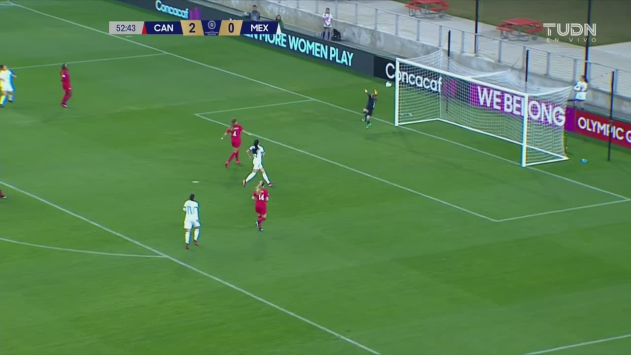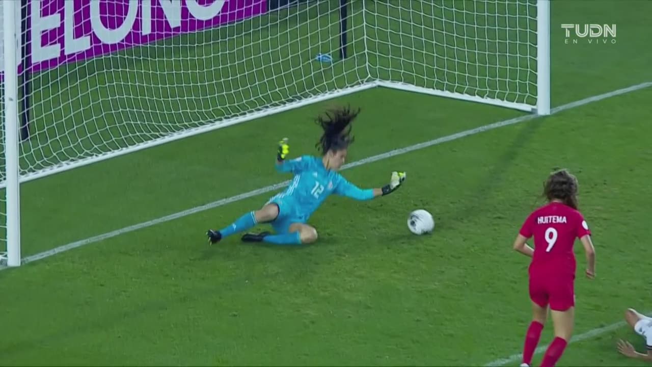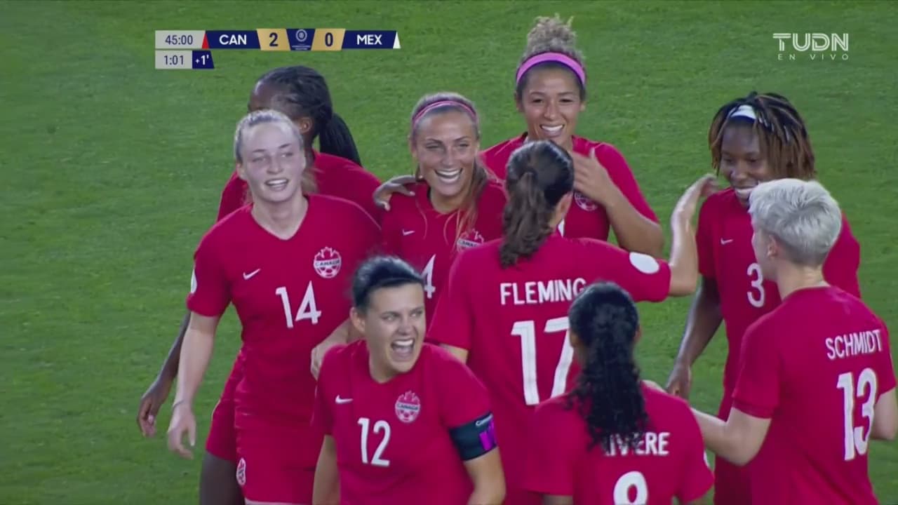 La insistencia premió a Canadá y logró irse a los vestidores con una ventaja de dos goles gracias un disparo de Shelina Zardorsky, que no parecía ir con mucha potencia, pero que ante la multitud dentro del área, Alvarado se fintó y no reaccionó a tiempo para desviar el peligro.