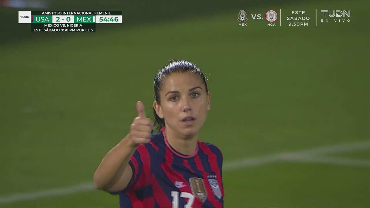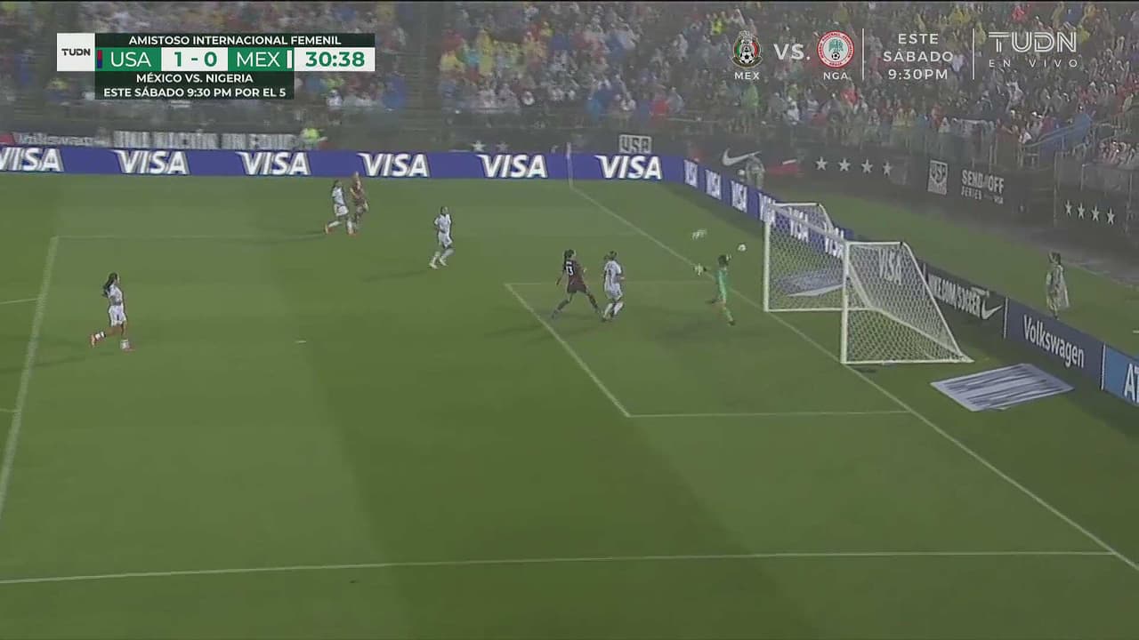 México intentó aguantar, pero no fue suficiente, porque en una salida desde el fondo perdieron el balón y vino el desdoble rápido de las norteamericanas, el balón quedó en Mewis, que disparó potente a la red.