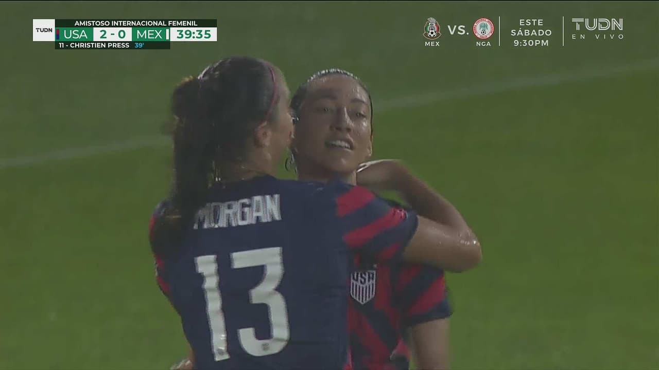 A seis minutos del final siguió el embate estadounidense y volvió a ser Press la encargada de robar un balón en el área y disparar ante el pobre intento de la portera mexicana.