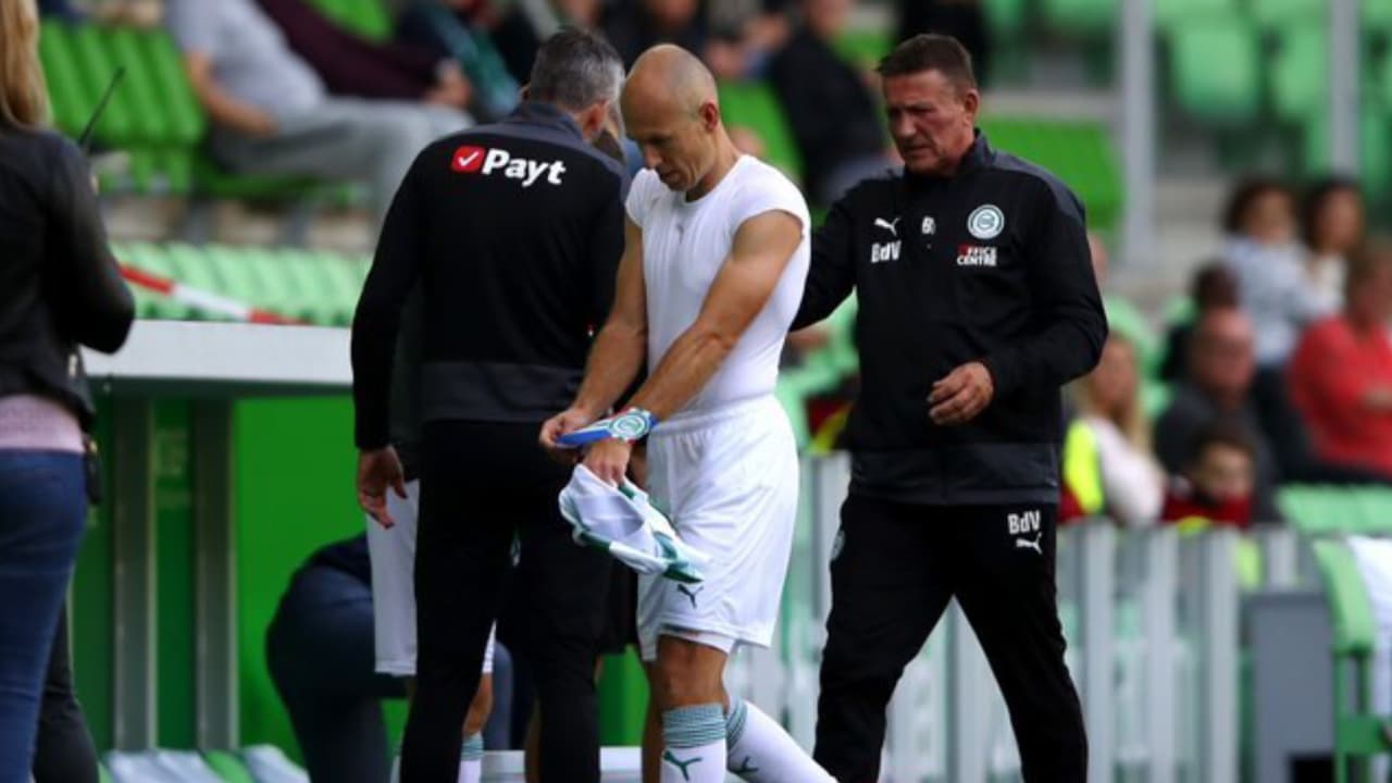 Arjen Robben se retiró lesionado en la primera parte en su estreno oficial este domingo como jugador del Groningen, tras una jugada sin aparente peligro. El Groningen terminó perdiendo 1-3 con el PSV de Érick Gutiérrez que no fue convocado por lesión e n partido de pretemporada.