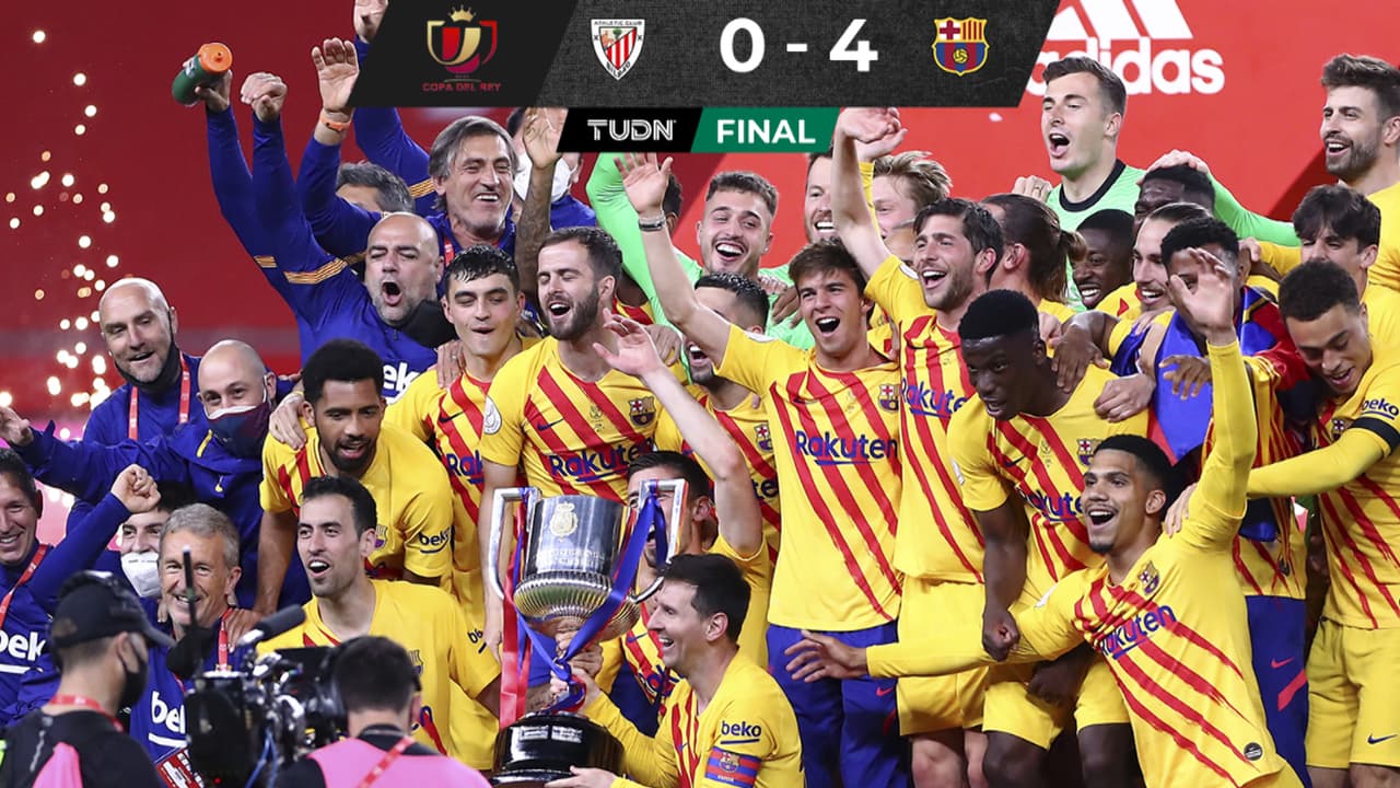 El Barcelona se alzó con el título de la Copa del Rey de España tras vencer 0-4 al Athletic Club Bilbao en la gran final, con la que recupera la felicidad en una temporada atípica y complicada para el club Blaugrana.