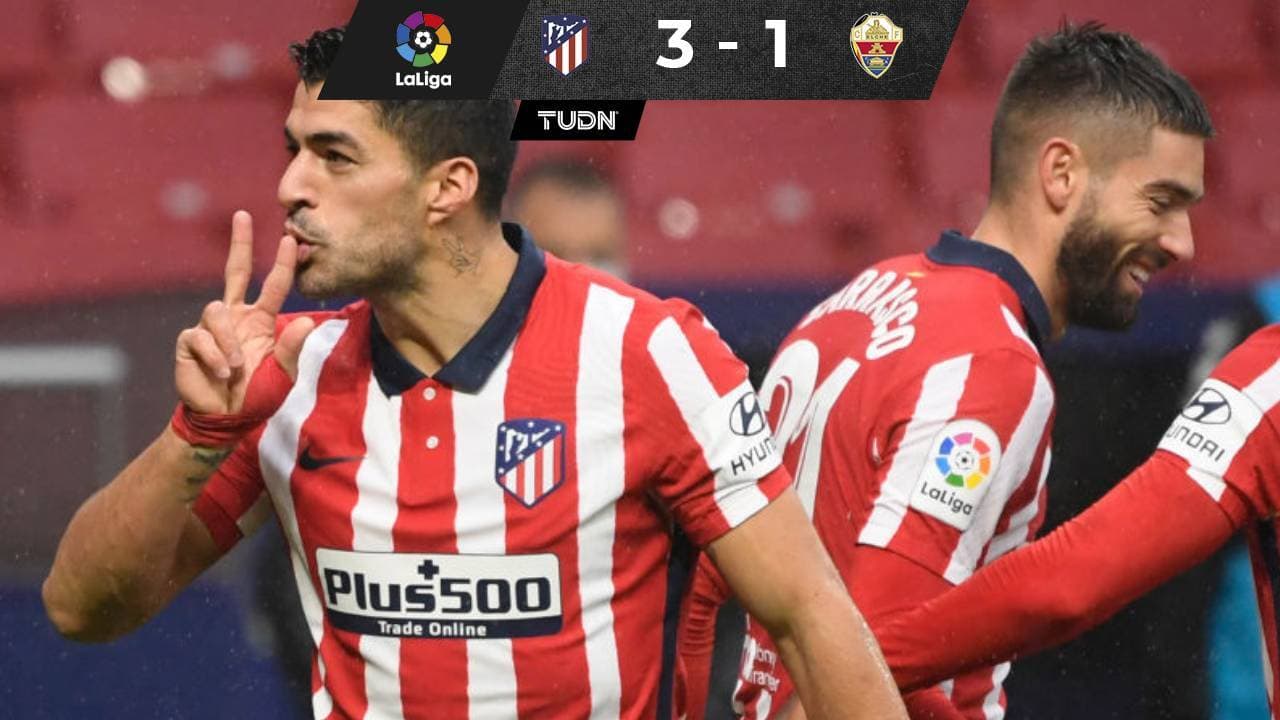Con doblete de Luis Suárez y anotación de Diego Costa, el Atlético de Madrid derrotó como local al conjunto del Elche (3-1), en duelo correspondiente a la fecha 14 de La Liga de España.