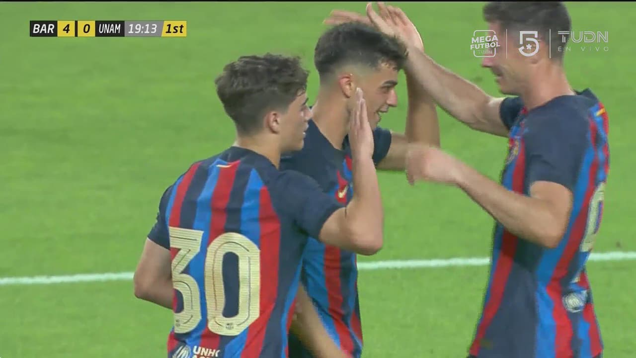 Un par de minutos después con asistencia de Robert Lewandowski, Pedri anotó el segundo gol del encuentro después de un error defensivo de Pumas y del portero.