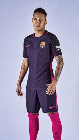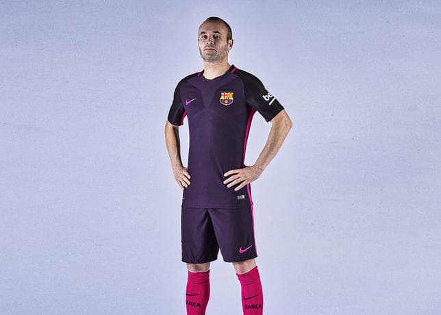 El morado es el color elegido por la marca deportiva Nike para el segundo uniforme del Barcelona, con detalles rosas en costados, cuello y las medias.