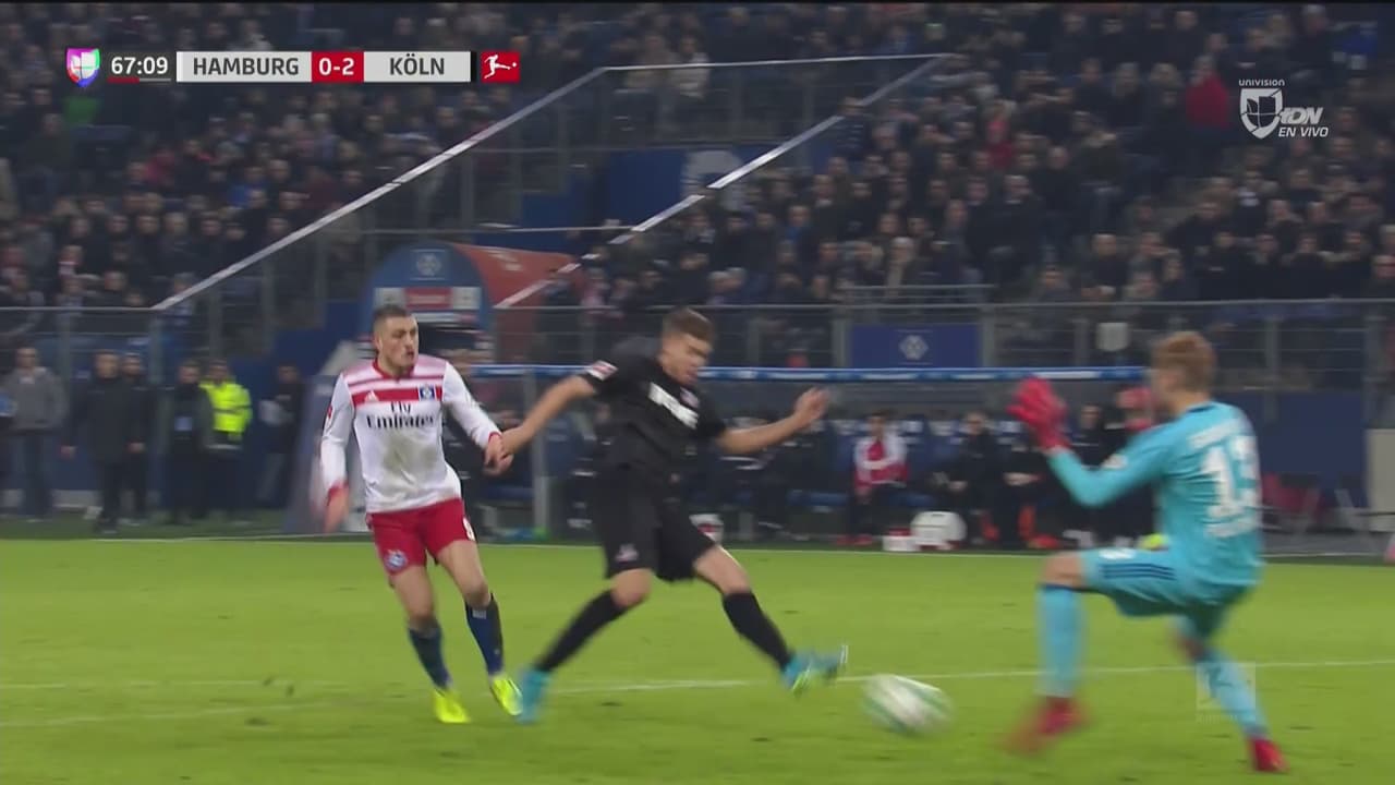 El Colonia dio un paso importante buscando la salvación en la Bundesliga al vencer 2-0 al Hamburgo en un duelo directo de equipos involucrados por el descenso.