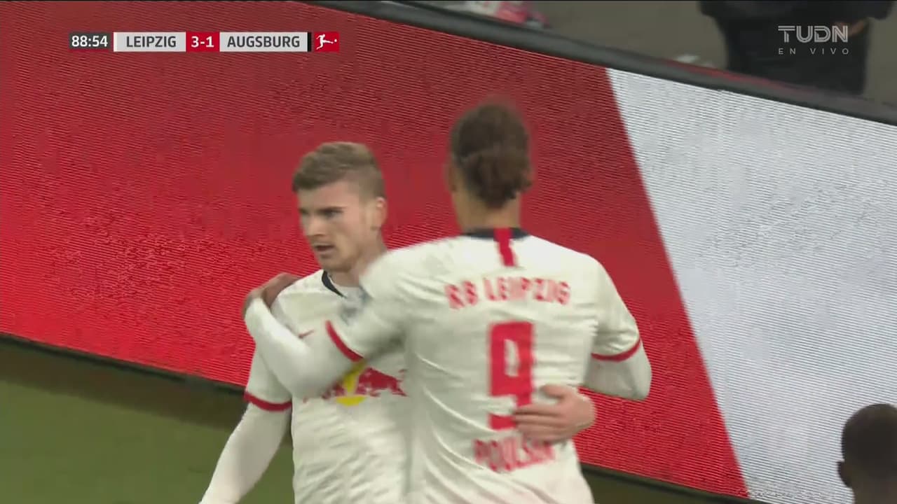 RB Leipzig goleó 3-1 al Augsburg para extender su racha a ocho partidos sin conocer la derrota y de paso, mantenerse en la cima de la Bundesliga.