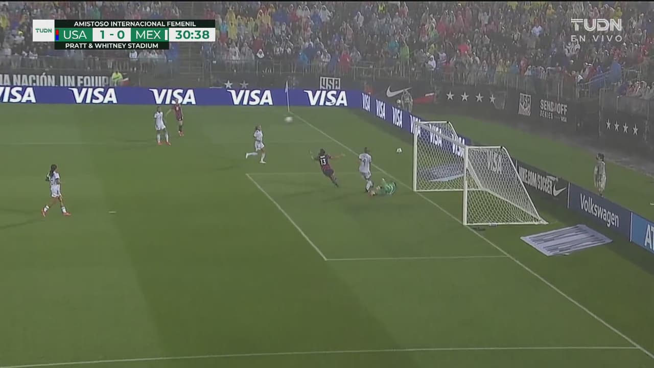 El Team USA estuvo muy cerca de incrementar la ventaja al 30' con un centro de Rapinoe.