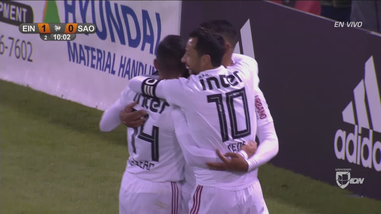 El croata realizó una ejecución perfecta, golpeando fuerte, por el centro y arriba para dejar sin opciones a Tiago Volpi, que recibía su primer tanto del año con la playera del Sao Paulo, con solo 9 minutos de partido.