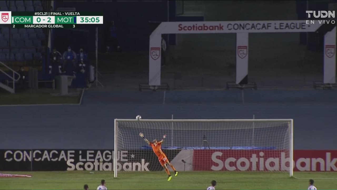 Desde casi la mitad de la cancha, el volante del Motagua sacó el cañonazo que pegó en el poste al 33’.