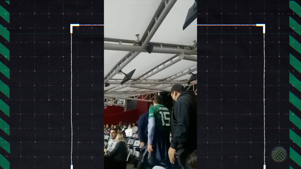 Momentos después se le ve alegar que no fue quien entonó o incitó el grito homofóbico, sin embargo, el cuerpo de seguridad lo escolta fuera de su asiento y fuera del inmueble.