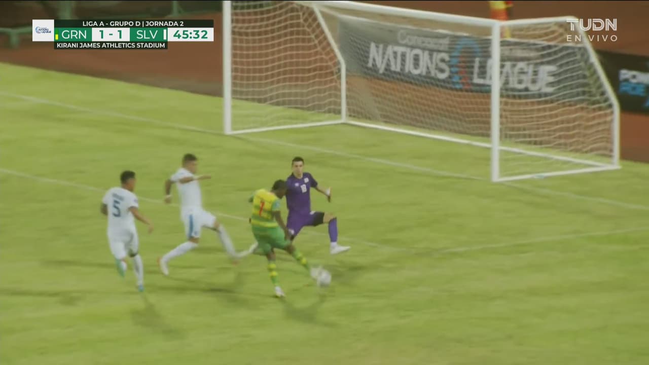La defensa de El Salvador perdió el balón en la salida y el jugador de Granada no pudo definir al 46’.