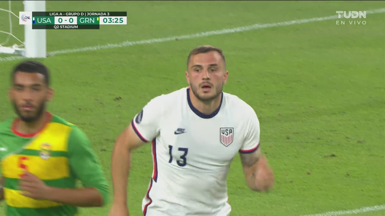 Team USA llega por el costado derecho y mete servicio al área, pero no es bueno el intento, al 4'.