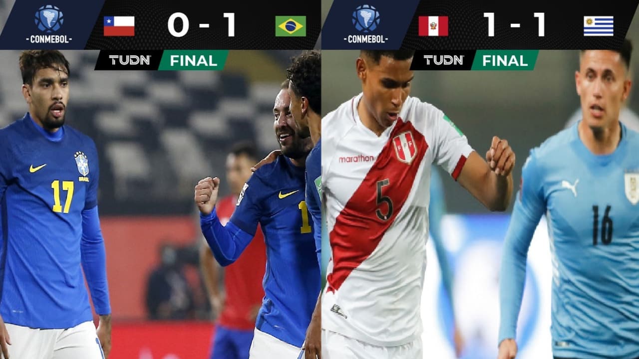 El equipo dirigido por Tite se impuso a Chile en un encuentro en el que el guardameta Weverton fue figura en la primera mitad; Uruguay sacó el empate en Perú.
