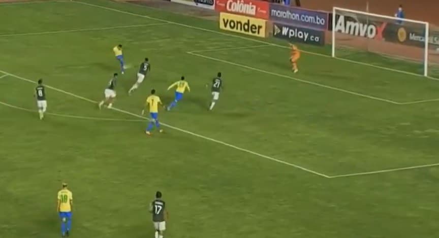 66' Bruno Guimarães marcó una joya de gol con gran definición al ángulo a pase de Paquetá para el 0-3 de Brasil sobre Bolivia en La Paz.