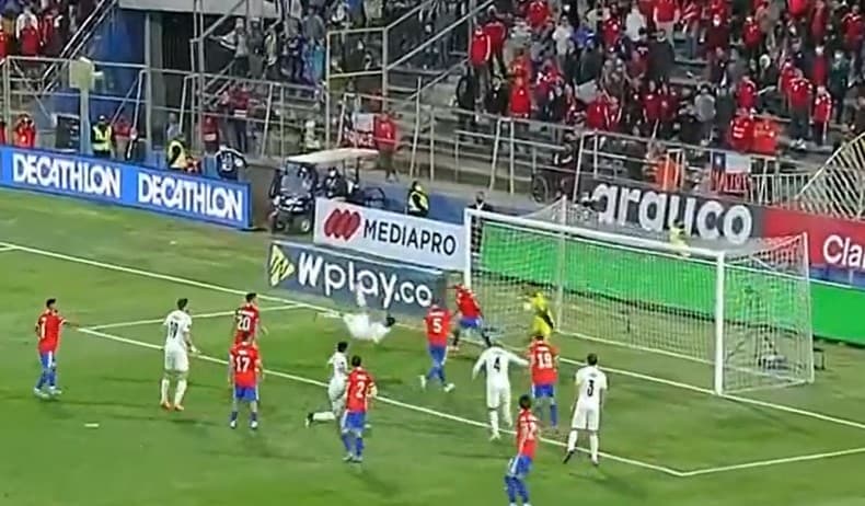79' Luis Suárez, con una chilena, marca el 1-0 de la Celeste sobre La Roja y prácticamente lo elimina de toda chance de clasificar a Qatar 2022.