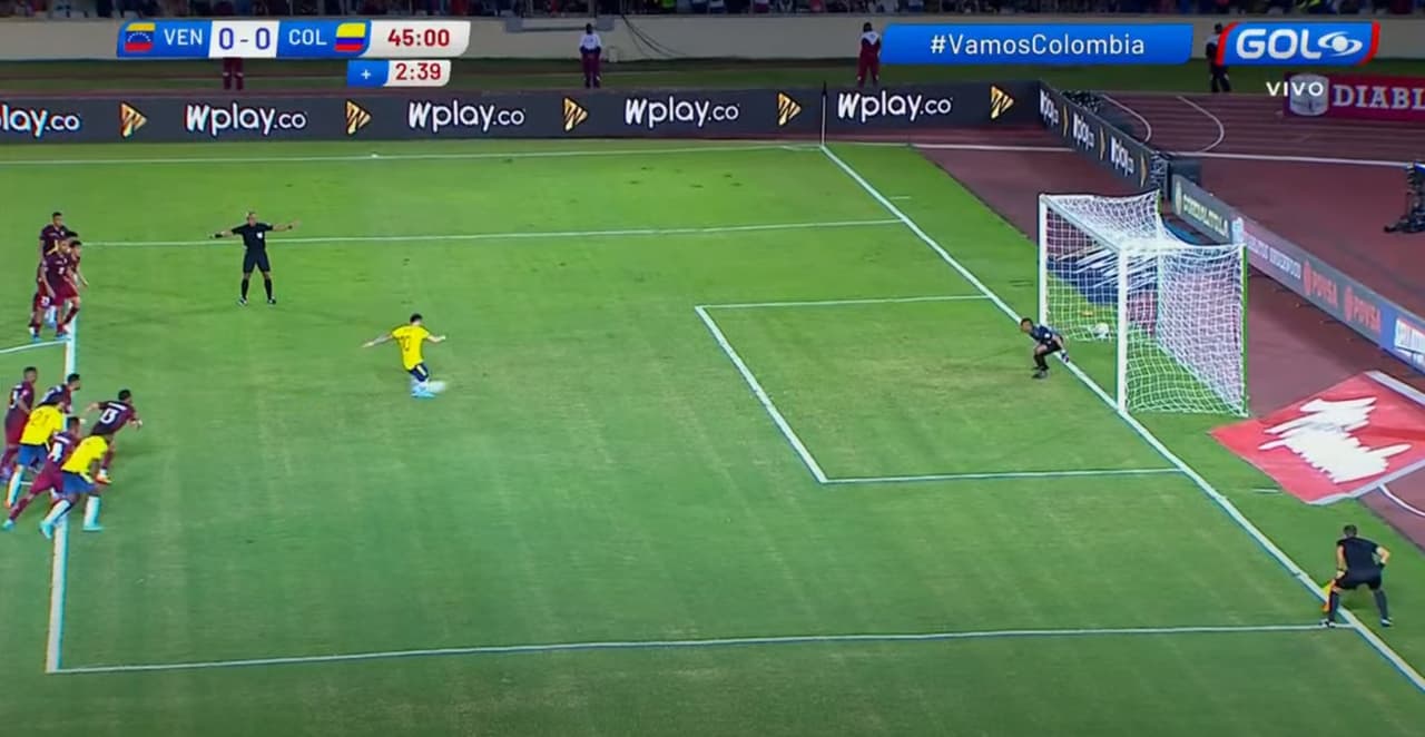 El portero venezolano del Lens de Francia dio pasos al frente sobre la línea de meta y tapó el primer penal de James, no hay duda que fue bien repetida la pena máxima.