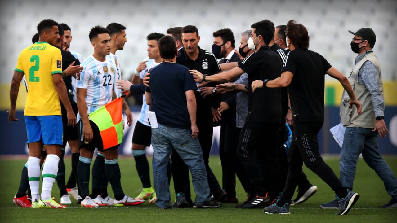 El encuentro entre Brasil y Argentina por la Eliminatoria de la Conmebol fue suspendido oficialmente debido a que autoridades sanitarias brasileñas ingresaron a la cancha del Estadio Neo Química Arena de Sao Paola para reritar a cuatro jugadores argentinos, quienes habrían falseado información en su entrada al país.