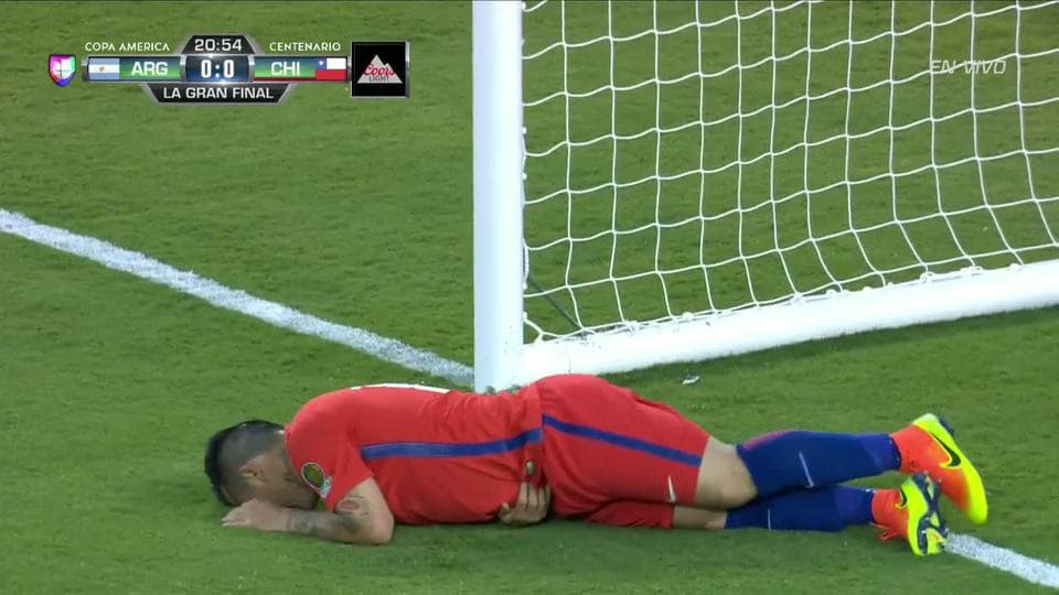 La jugada más clara del primer tiempo fue para Gonzalo Higuaín. Algo tiene el atacante del Napoli que tiene grandes fallas en las finales y en esta ocasión no fue la excepción. Chile quiso salir jugando pero la presión del 'Pipita' provocó un error de Gary Medel; el delantero se plantó solo ante Claudio Bravo mandando su disparo fuera. En las gradas, los hinchas se llevaban las manos al rostro en señal de desesperación, como si de golpe les llegaran las fallas que Higuaín tuvo en la final de la Copa del Mundo de Brasil 2014.