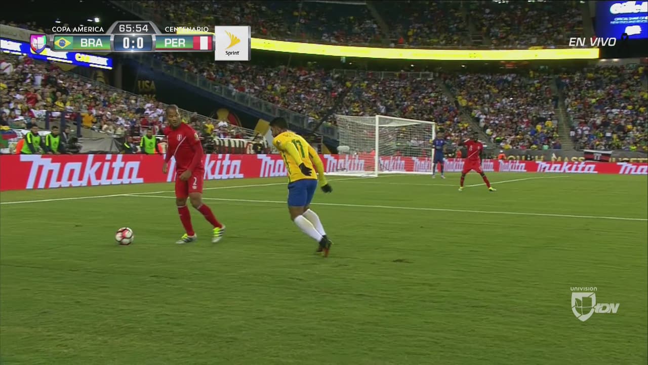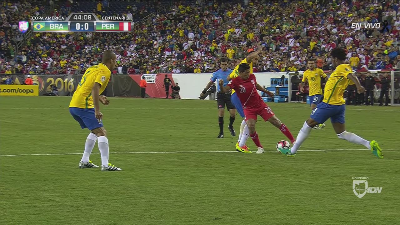 El jugador número ocho tardó en decidir y apenas remató a la posición del arquero peruano. Una calca de Brasil en el partido y el torneo. Un triste resumen de sí mismo.