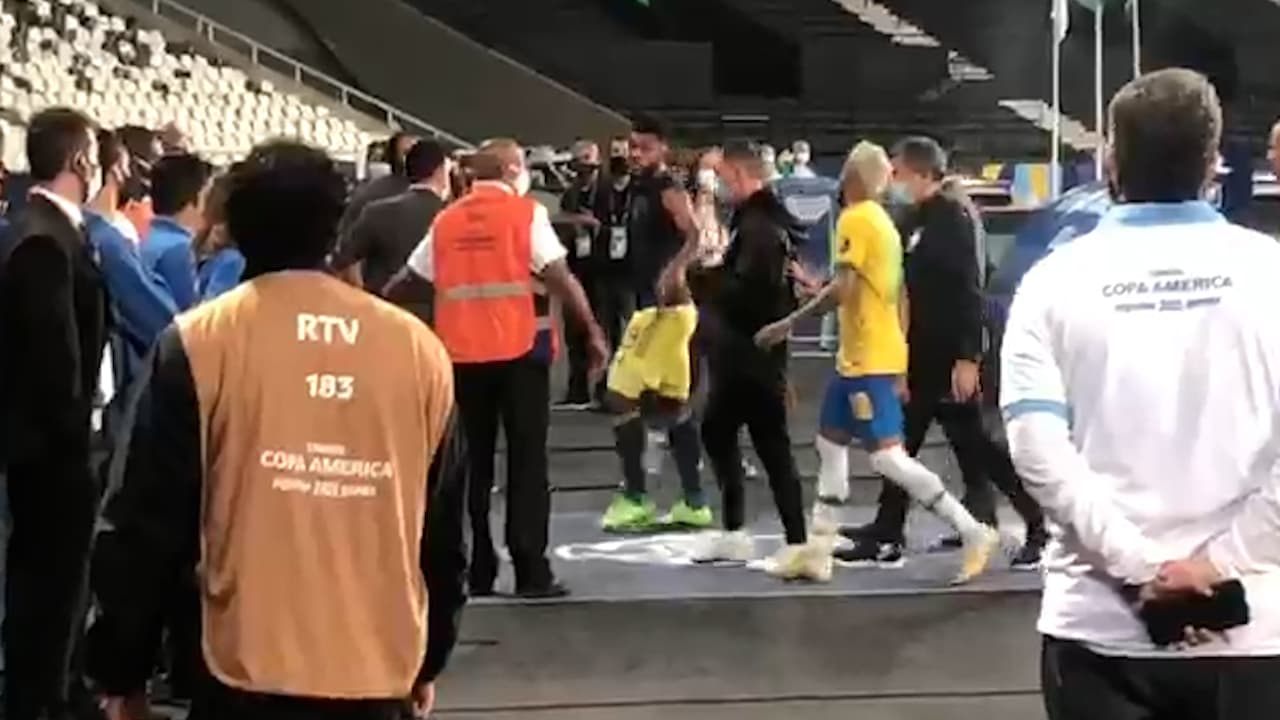Con mucha polémica y en un partido que se fue calentando hasta terminar entre dimes y diretes, Brasil venció 2-1 a Colombia en duelo del Grupo B de la Copa América 2021.