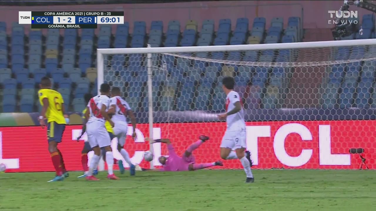 Colombia intentó responder rápido y lo hizo con un remate de cabeza a pelota para, pero Pedro Gallese hizo un atajadón en la línea para mantener la ventaja del equipo inca.